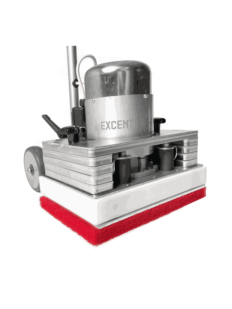 Excentr 30-20 compact er en maskin av ypperste kvalitet i rustfritt stål, solid og spesielt effektiv takket være 2850 bevegelser per minutt. Den perfekte balansen og det justerbare håndtaket gjør det enkelt og ergonomisk å jobbe selv i trapper. Det er vesentlig enklere å kjøre denne typen makin kontra en tradisjonell skuremaskin. Kan kjøres med hjulene i bakken eller la maskinen "flyte" på overflaten.